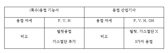 용접산업기사 필기를 취득하셨다면 이제 여러분들께서는 실기를 준비하실 겁니다. 주변에 취득하신 분들이 많으시다면 어느 정도 알고 계시겠지만, 일단 기능사 시험과의 차이점은 무엇보다도 3가지 용접을 다 할 줄 아셔야한다는 점입니다. 2022년 현재는 용접 기능사, 특수용접 기능사로 나뉘어 있지만 2023년 부터는 피복아크전기용접, 이산화탄소가스아크 용접, 텅스텐아크용접 기능사 이렇게 3부분으로 세분화되어 나눠지기 때문에 각각 취득하시려면 하나하나씩 따로 배우셔야하는데, 산업기사의 경우 이 3가지 용접을 한번에 진행하게 됩니다. 저의 경우 전역 후 용접을 배우기 위해 TIG용접과 CO2용접을 따로 배웠기에 준비하는데 큰 문제는 없었으나 보통 처음 접하시는 분들이라면 난이도가 높을 수 있습니다. 그리고 한 가지 더 차이점이 있다면 다음 그림을 보면서 설명해드리겠습니다.