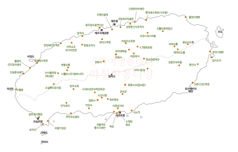 저의 경우 짧으면 3박 4일, 길면 6박 7일의 일정으로 있곤 했는데요. 여유가 되신다면 저 부근에 있는 관광지를 두루두루 보셔도 되고, 여유가 없으시다면 저 부근의 관광지 중 하나씩 선정해서 다니셔도 제주의 반은 돌았으니 꽤나 재밌으실 겁니다. 이 부분은 다음 포스팅에서 좀 더 다뤄볼게요!