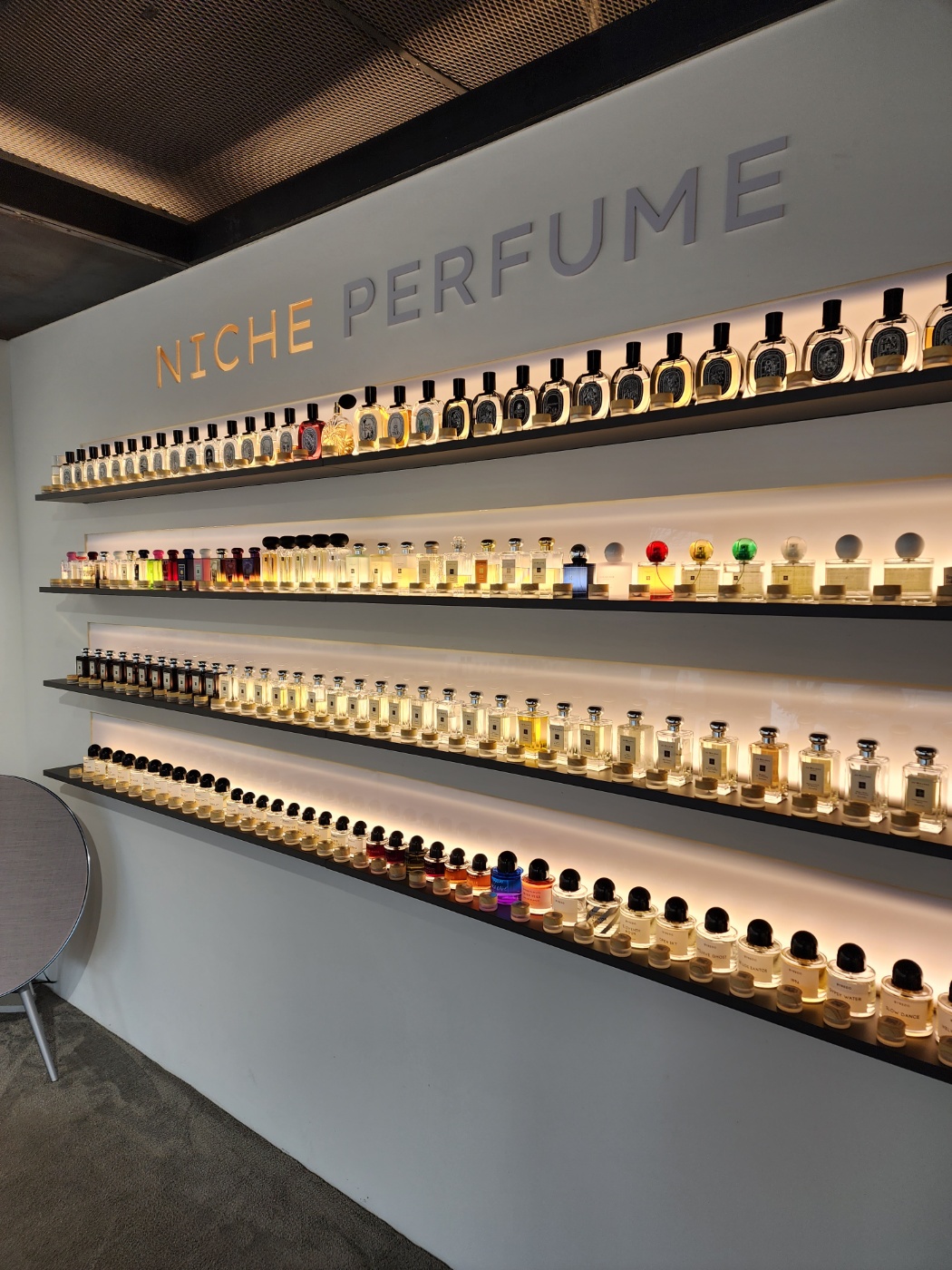 안에 들어가보니 다양한 종류의 향수가 진열되어 있었어요.