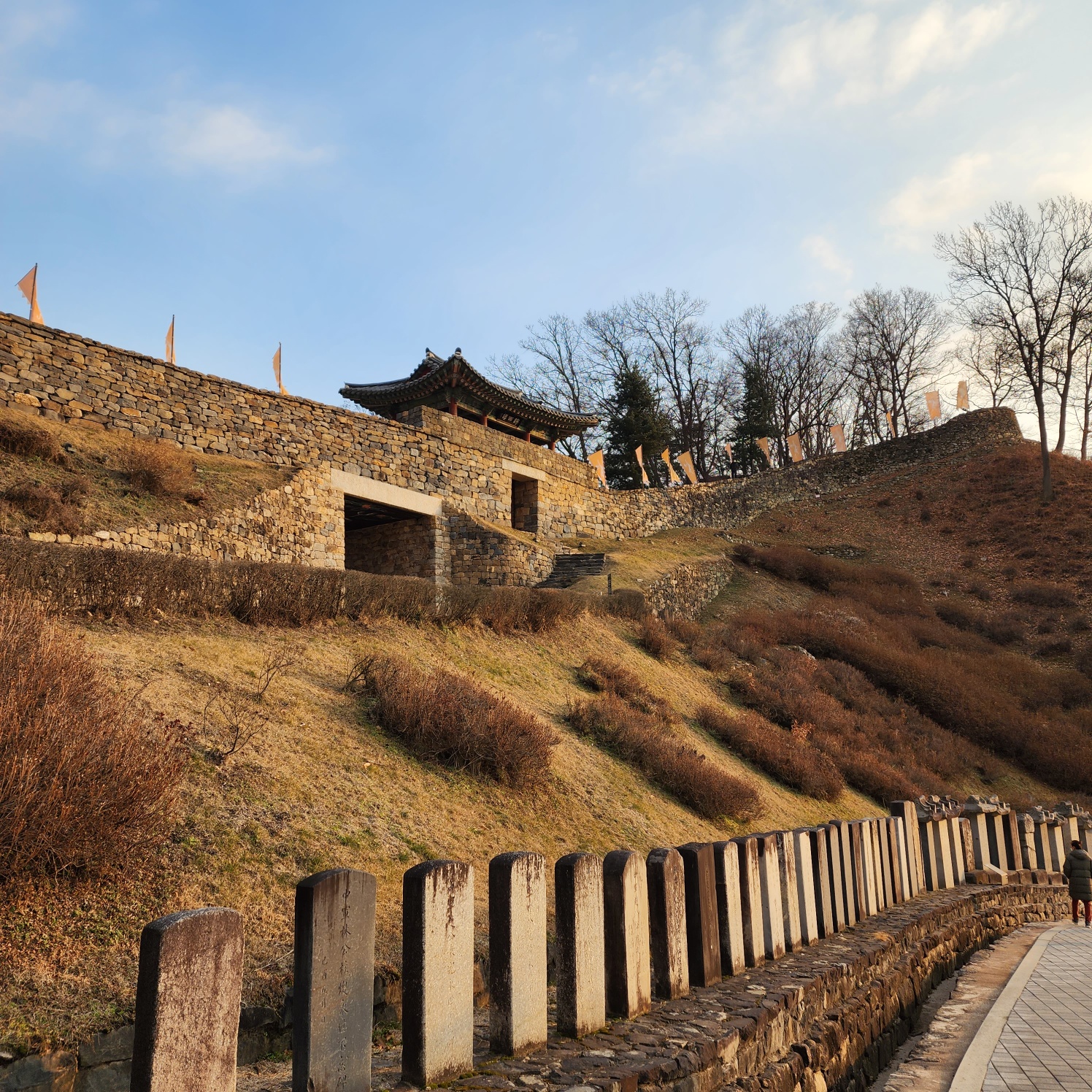 성곽을 타고 올라갔습니다.