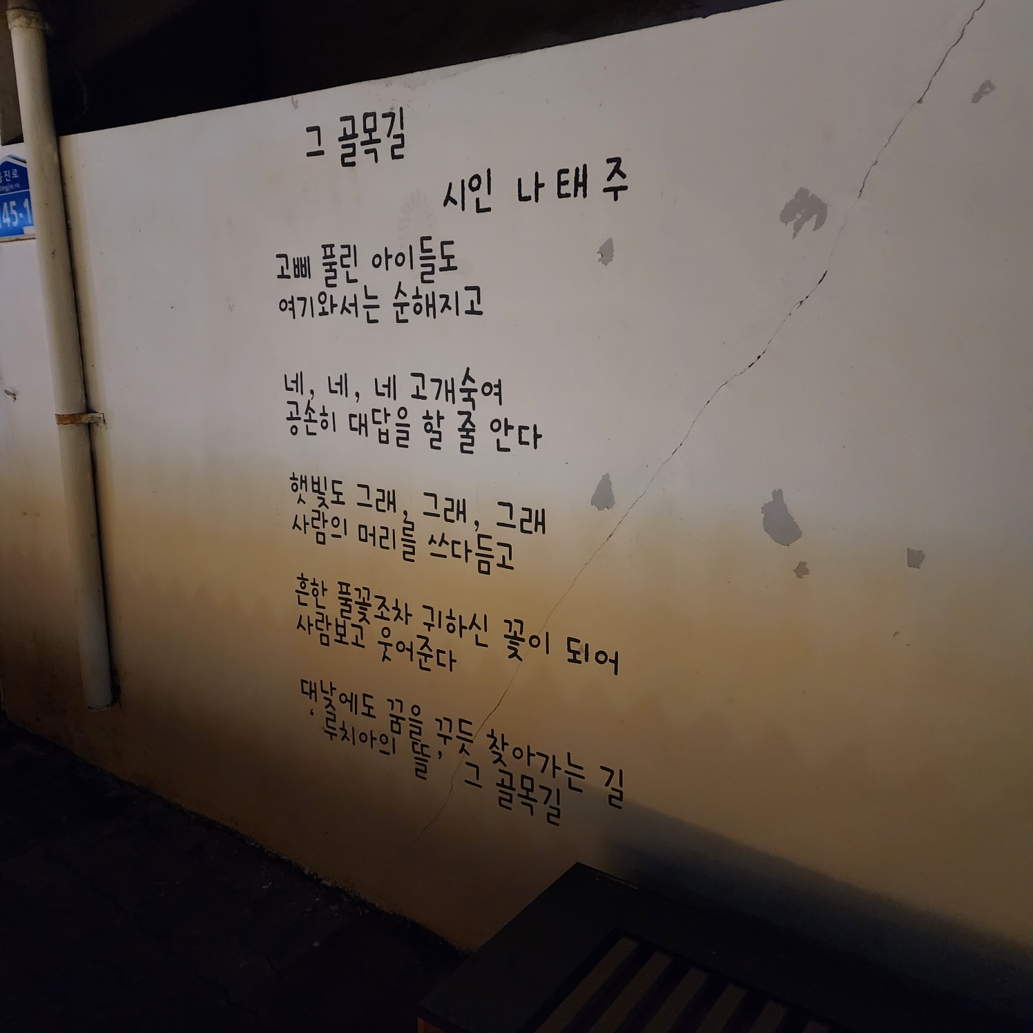제민천 주변으로 길따라 이렇게 벽화나 시나 적혀있는 경우가 정말 많았어요.