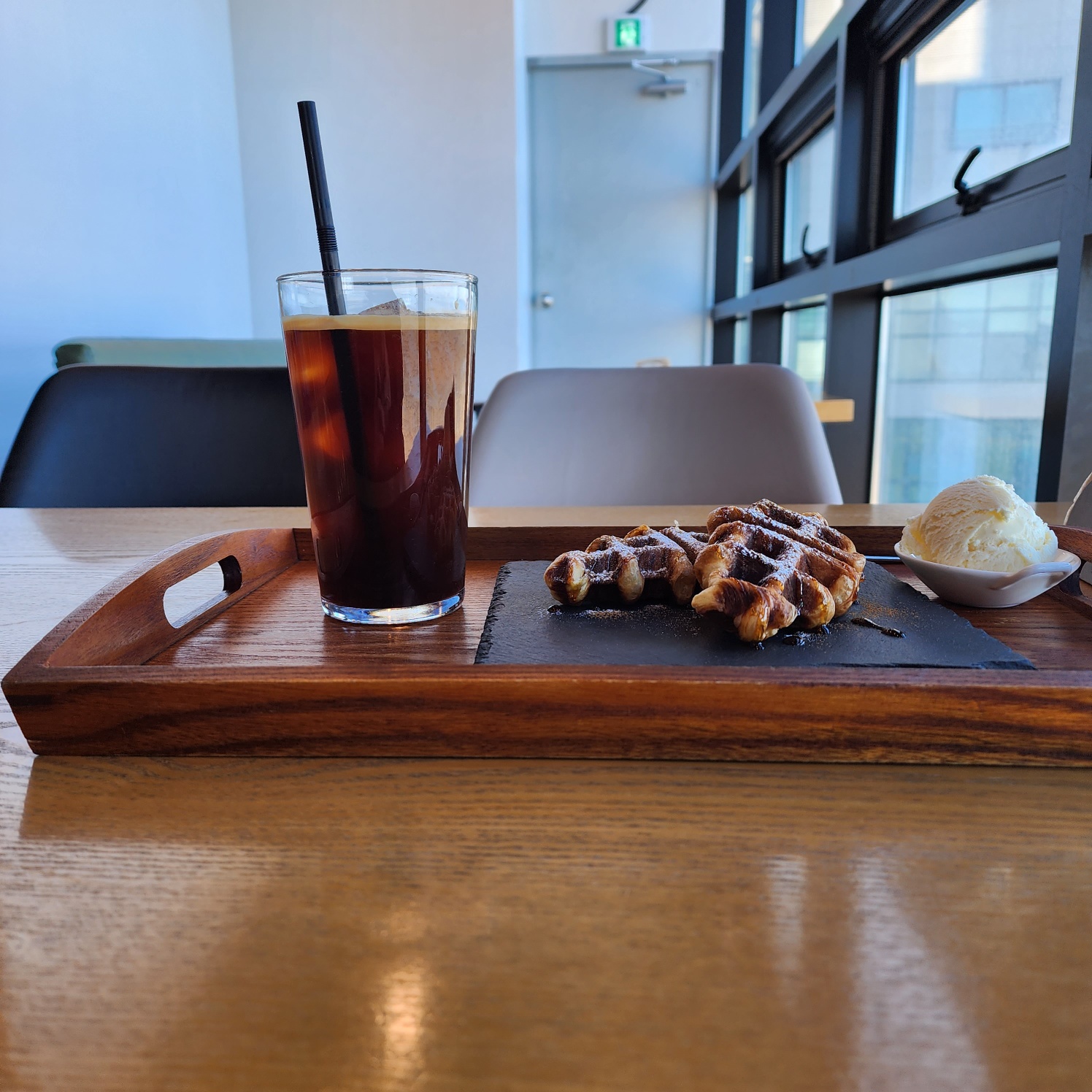 아메리카노는 고소한 맛이 있었고, 거기에 곁들여 먹는 크로플이 인상적이었는데,