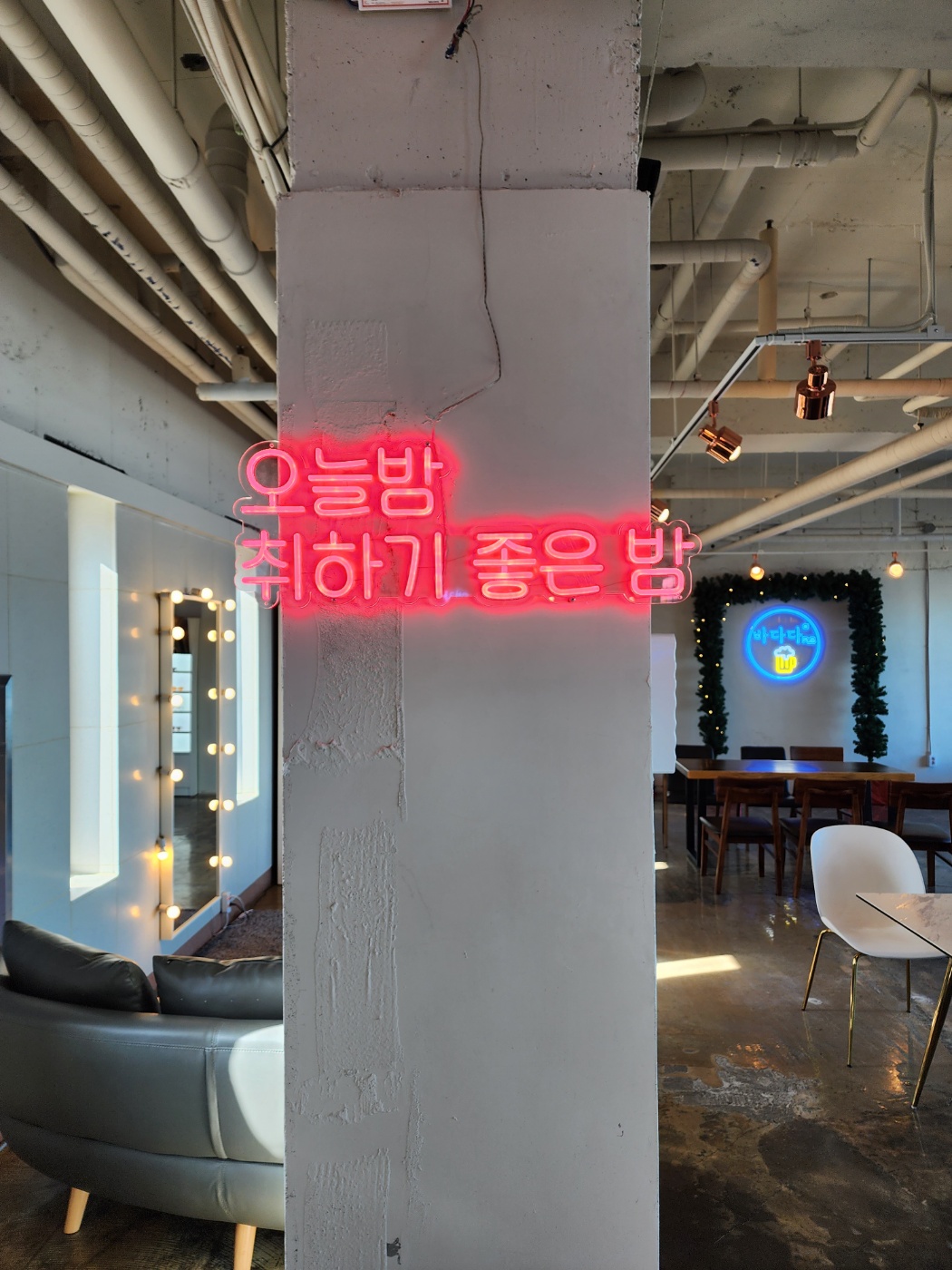 올라 오자마자 1층과는 사뭇 다른 분위기가 반전이었는데, 이곳은 펍으로도 운영하는 것 같았어요.