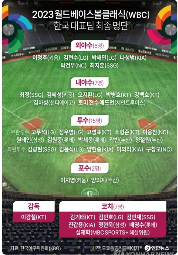 이번 2023 WBC에 참가하게 될 대표팀 명단입니다.
