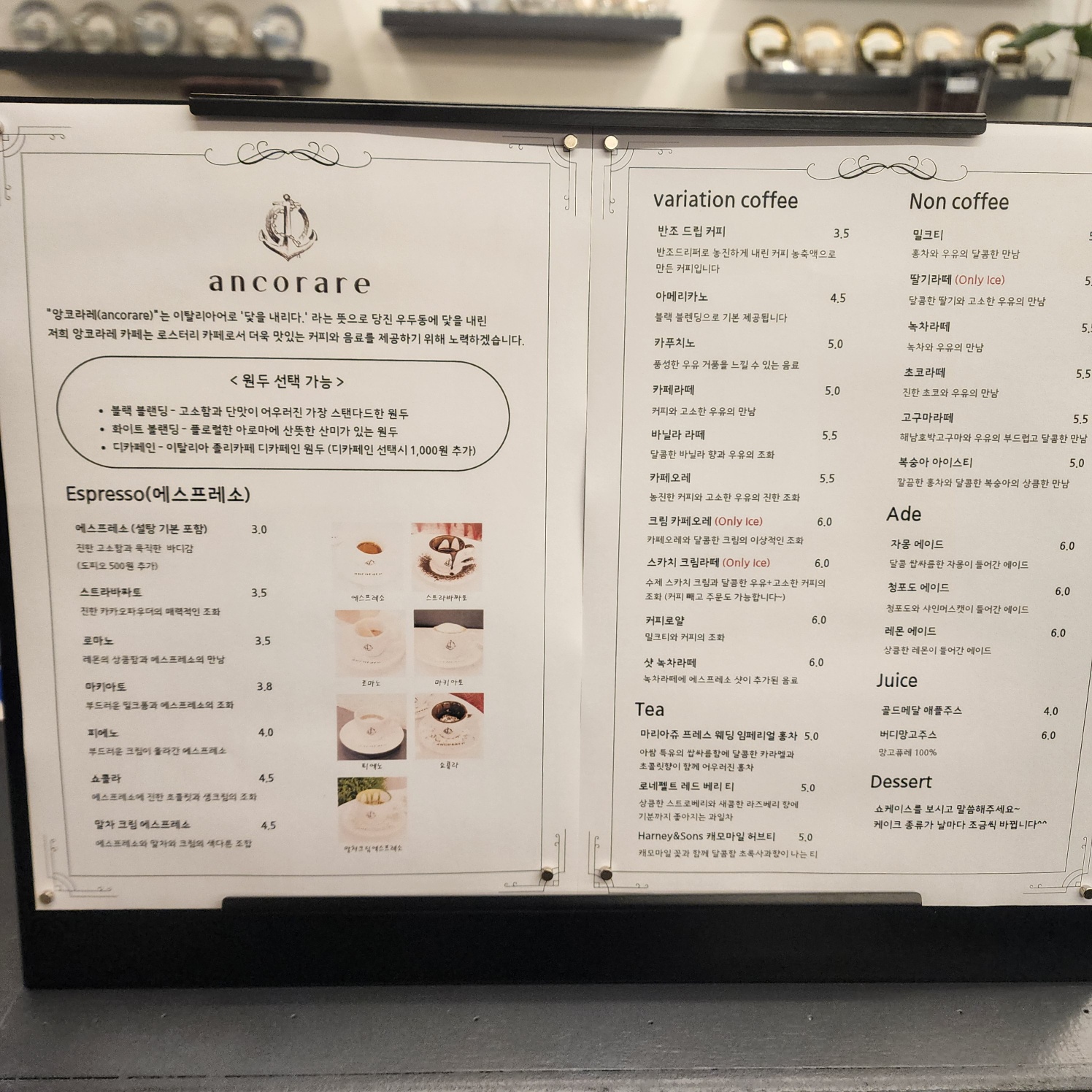 메뉴판에 보시다시피 원두를 선택할 수 있습니다.